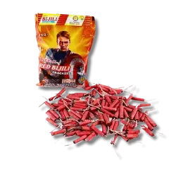 Bijili crackers are small, cylinder-shaped firecrackers filled with pyrotechnic chemicals. They have a small fuse sticking out from one end. When lit, they make a quick and loud popping sound. There are two types: Red Bijili, which has a simple plain red design, and Striped Bijili, which has colorful stripes for a unique look. They are sold in packs or bags with different amounts, like 50 or 100 crackers. They are easy to light and safe for children with supervision. Get your Bijili crackers online now!