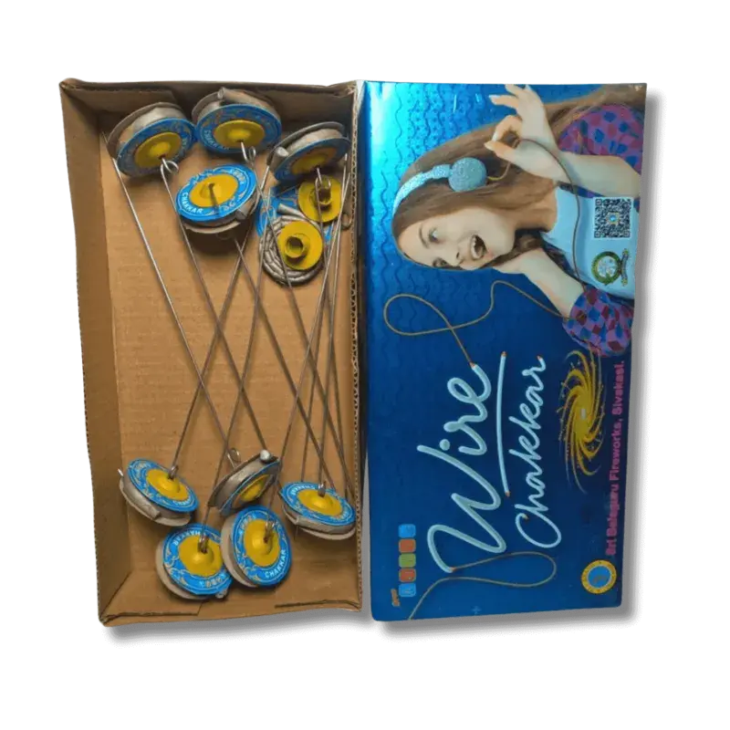 The wire chakkar will start spinning and whirling on the iron stick that we can hold in our hand, emitting golden sparkles from all angles when ignited.